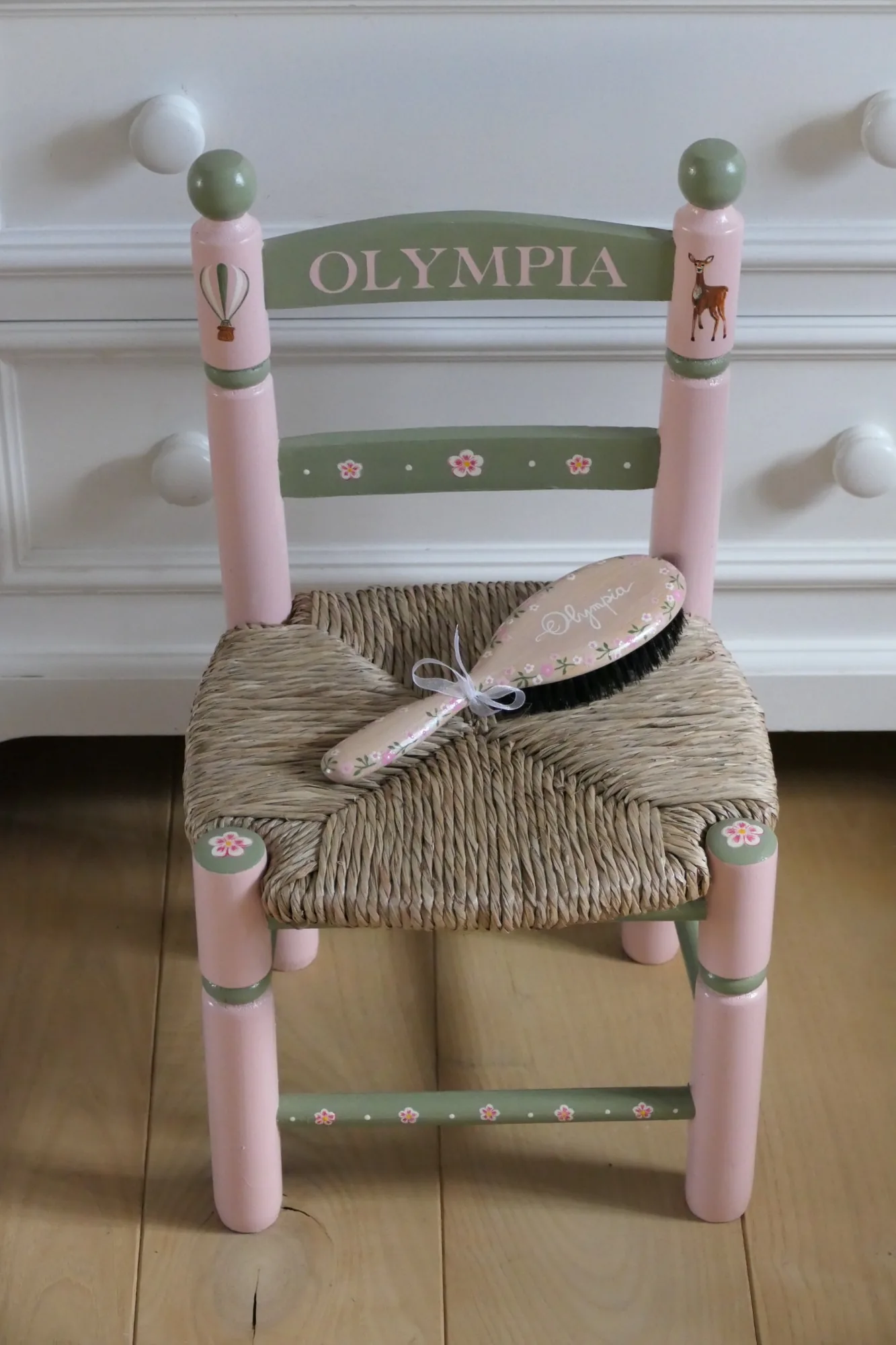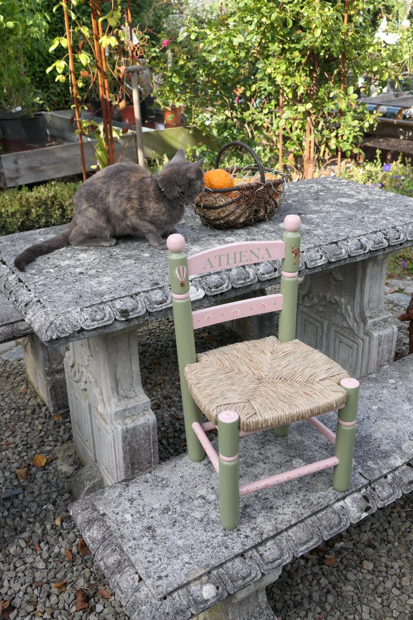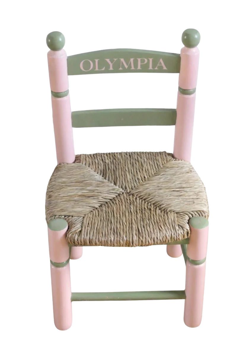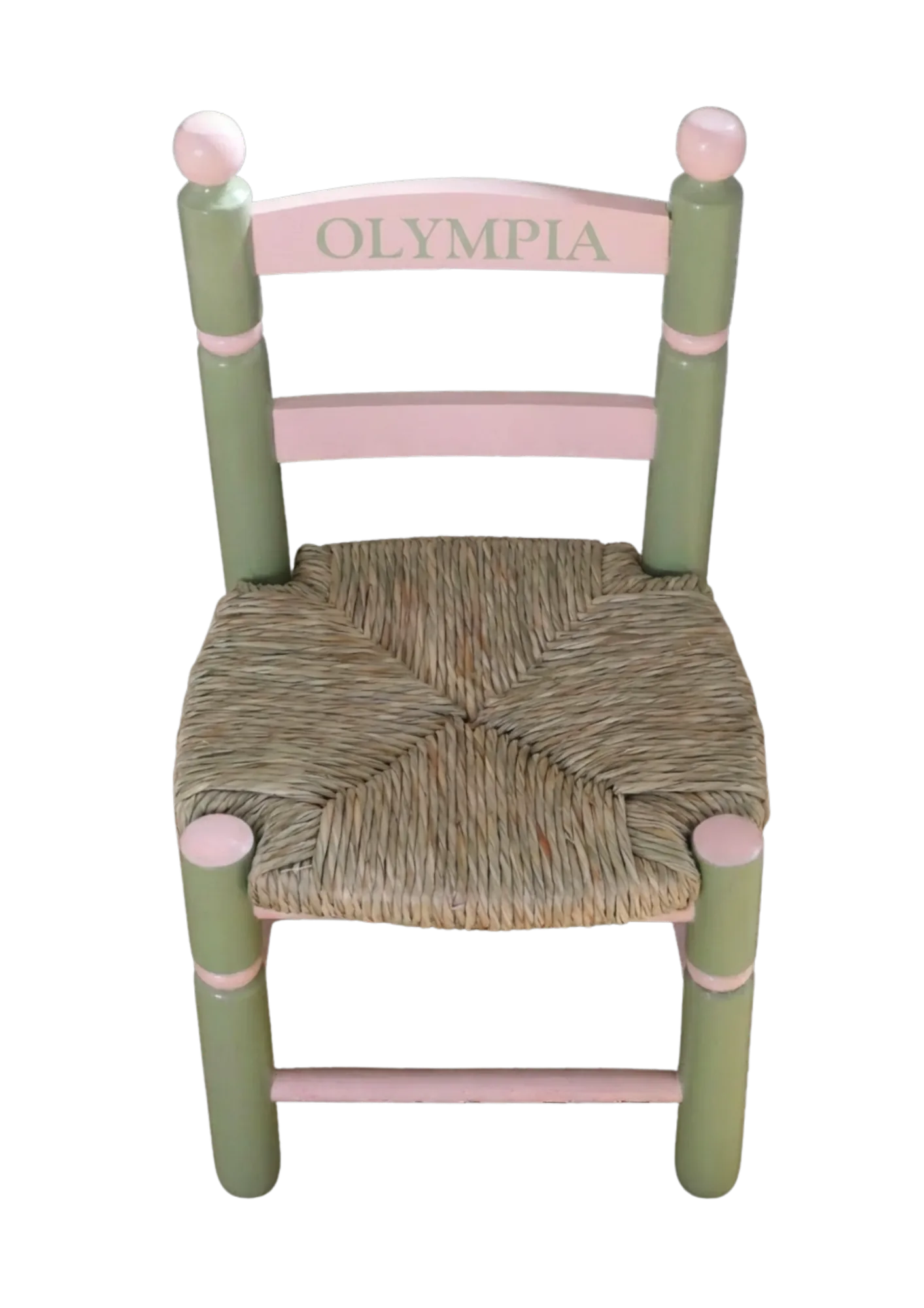 Le prénom est inscrit à l’avant et à l’arrière de la barre supérieure du dossier.