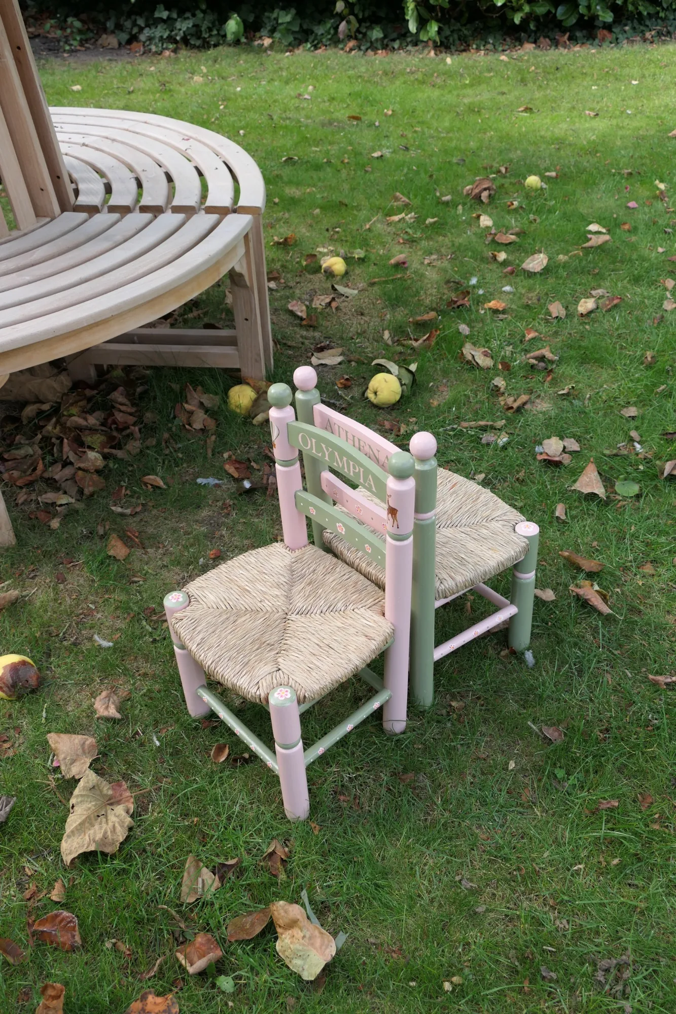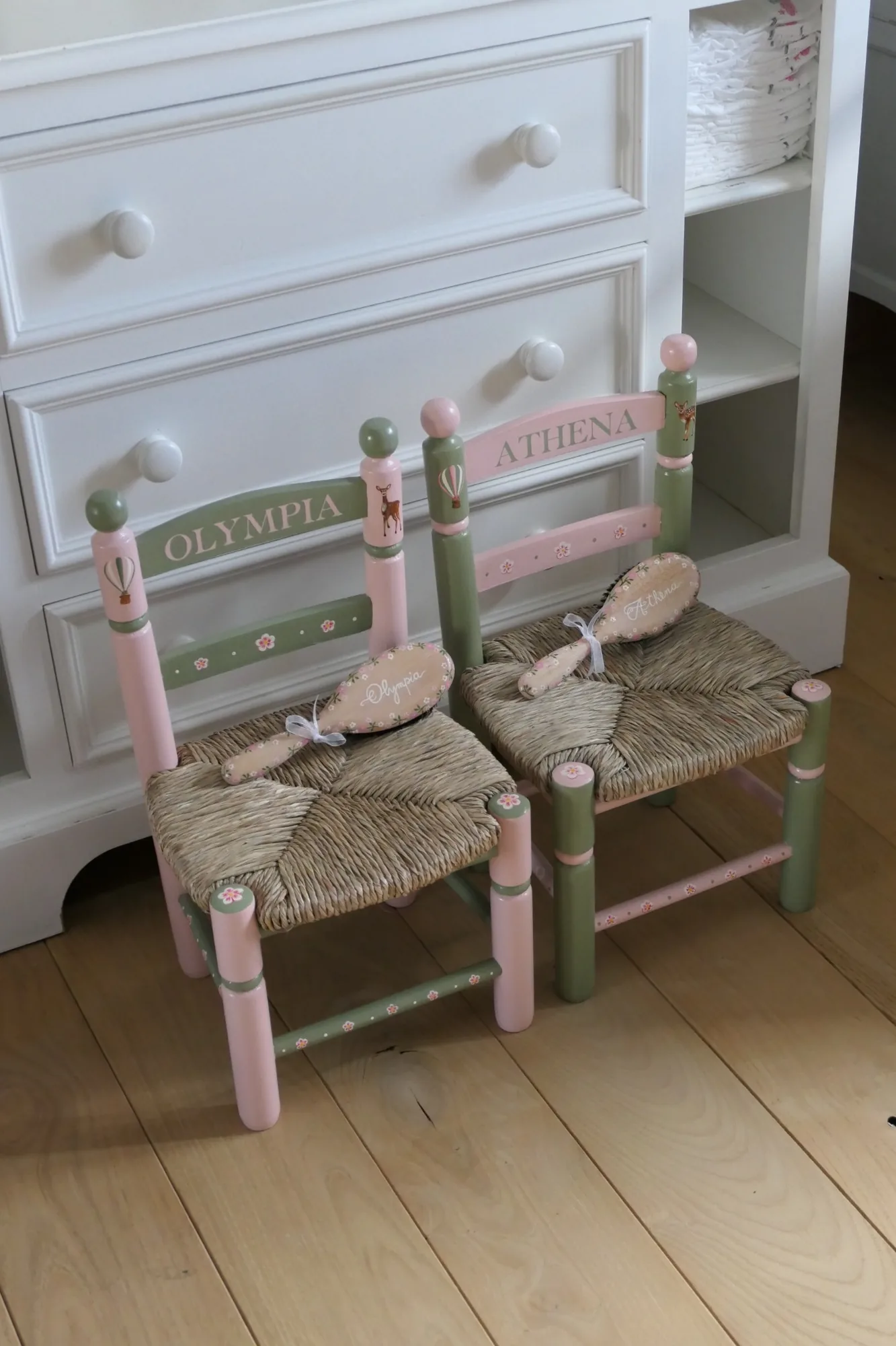 Chaque dessin est peint à la main, faisant de chaque chaise une pièce singulière. De légères variations par rapport aux modèles du catalogue participent à ce caractère unique.
